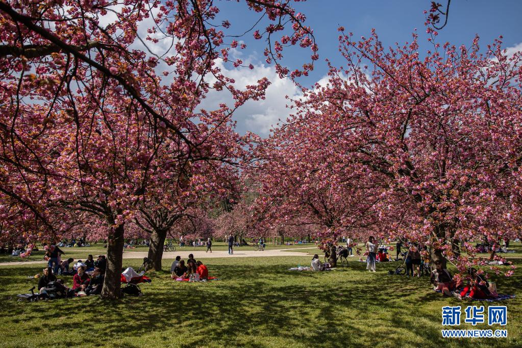 4月20日,人們?cè)诜▏?guó)巴黎近郊的國(guó)璽公園欣賞櫻花。