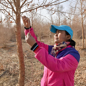 邊種樹、邊研究,帕提古麗和同事實踐了滴灌節(jié)水技術(shù)、草方格固定、栽植抗旱樹種、防沙林綁草護苗……沙漠里的樹木成活率不斷提升,生態(tài)環(huán)境不斷變好。