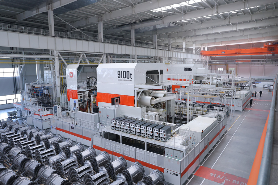 图为小米汽车工厂的9100吨大压铸设备