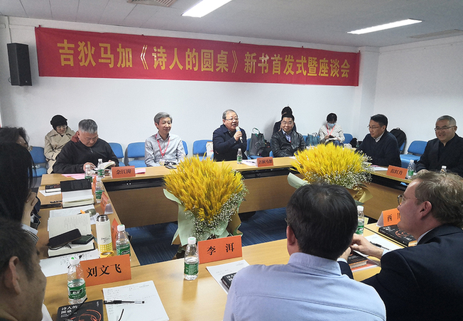 新華網(wǎng)北京4月1日電 由江蘇鳳凰文藝出版社主辦的吉狄馬加《詩(shī)人的圓桌》新書(shū)首發(fā)式暨座談會(huì)于3月31日下午在北京舉行。中國(guó)作協(xié)副主席、書(shū)記處書(shū)記,著名詩(shī)人吉狄馬加與著名作家李洱,著名詩(shī)人、翻譯家高興、西川、樹(shù)才、劉文飛,以及法國(guó)駐華使館公使銜文化參贊高明、鳳凰出版?zhèn)髅郊瘓F(tuán)總經(jīng)理孫真福、鳳凰出版?zhèn)髅焦煞萦邢薰究偨?jīng)理佘江濤等嘉賓出席此次活動(dòng),就新書(shū)內(nèi)容、詩(shī)歌寫(xiě)作與翻譯及中外詩(shī)歌交流等話題展開(kāi)對(duì)話。