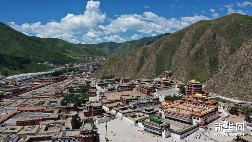 這是7月12日拍攝的拉卜楞寺建筑群(無人機(jī)照片)。新華社記者 杜哲宇 攝