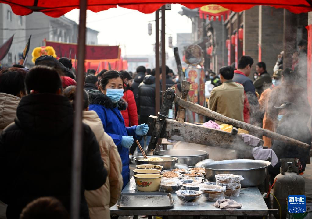 当日是农历正月十六,在河南省浚县举行的正月古庙会上,几十支社火团队轮番表演,踩高跷、扭秧歌、耍狮子,锣鼓喧天,热闹非凡,形成一道富有特色的中原文化景观。河南省浚县的正月古庙会已有1600多年历史,有“华北第一庙会”之称,被誉为民俗文化的“活化石”,是中国民间文化保护工程项目、国家级非物质文化遗产。