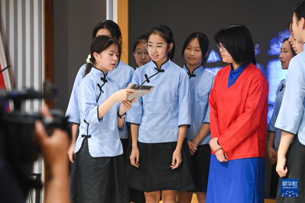7月20日,在嘉兴市秀洲区新塍镇陡门村文化礼堂,秀湖学校易之林剧社在表演舞台剧《红岩魂》。