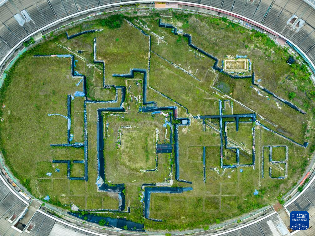 7月20日拍摄的位于成都体育中心内的东华门遗址公园内场遗址区(无人机照片)。