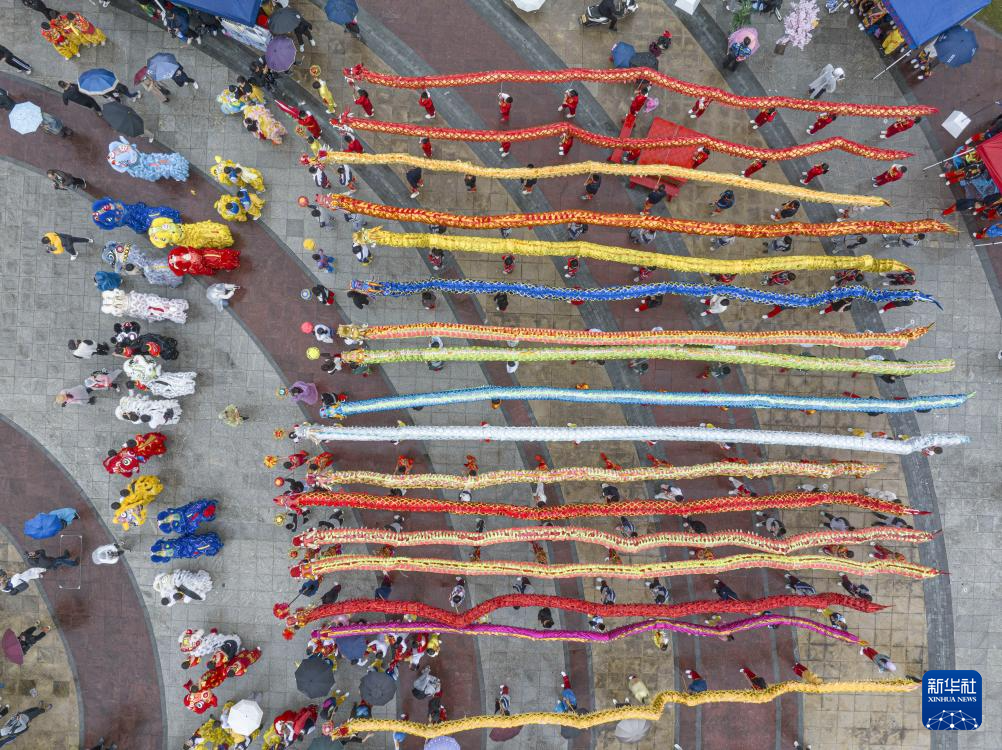 11月11日,在浙江省温州市三垟湿地公园北广场,舞龙队选手在比赛中(无人机照片)。