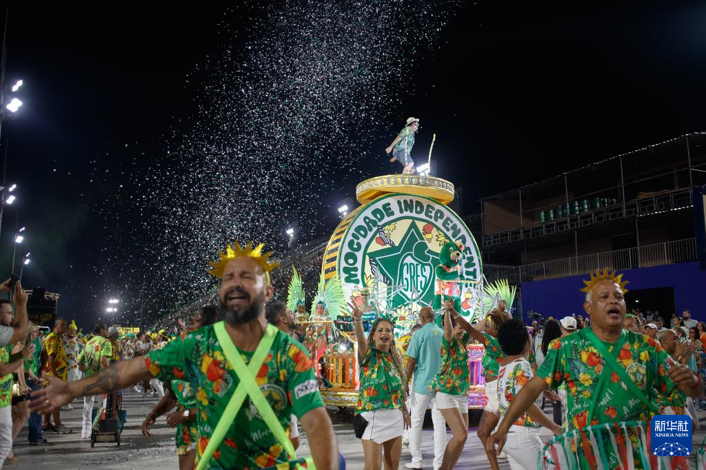 当地时间1月7日晚,巴西里约热内卢的桑巴舞校开始在桑巴大道进行狂欢节彩排。