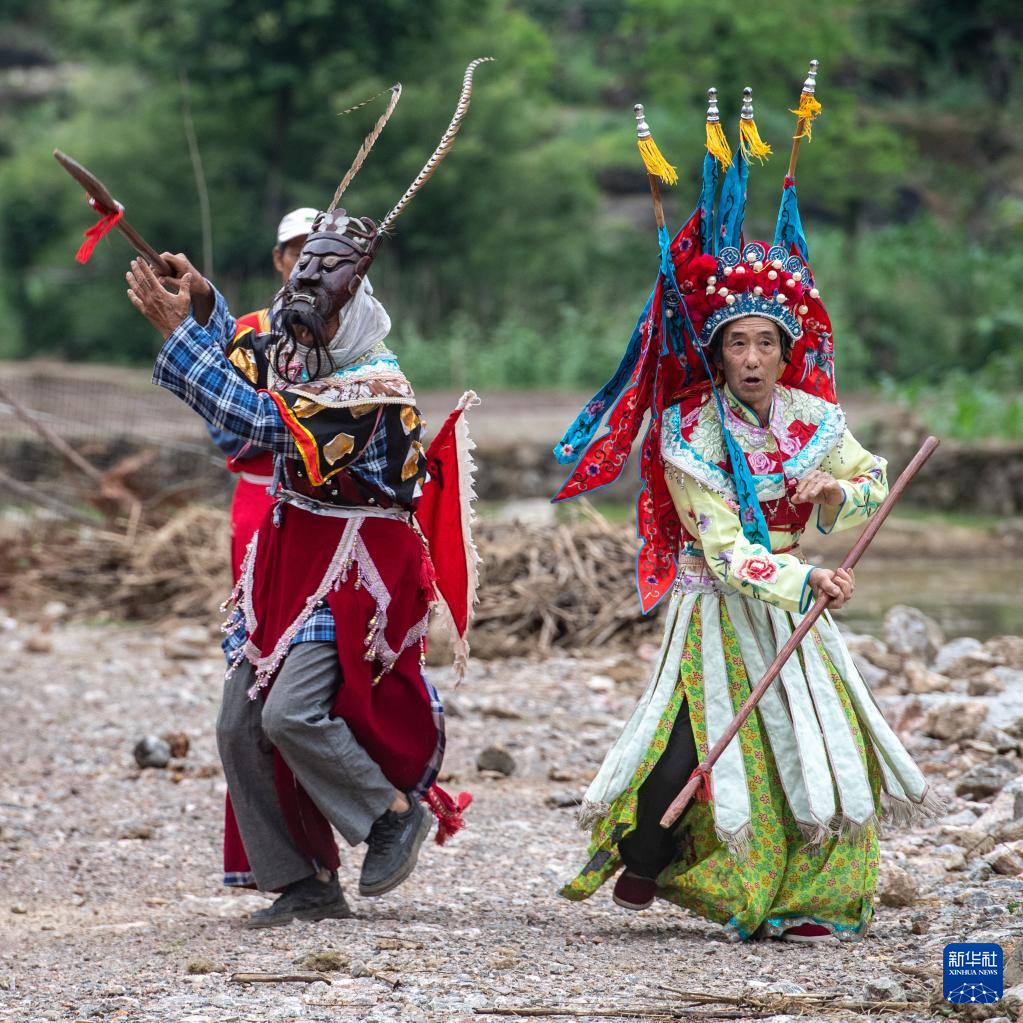 如今,越来越多的年轻人开始关注和了解阳戏,陈永霞的戏班子也有了更年轻的“预备班主”。对于陈永霞、冷定祥这样的“老戏骨”来说,阳戏舞台没有谢幕。锣鼓声声唱词起,酉阳阳戏人“农忙务农、农闲唱戏”的戏曲人生在这片土地上不断延续。