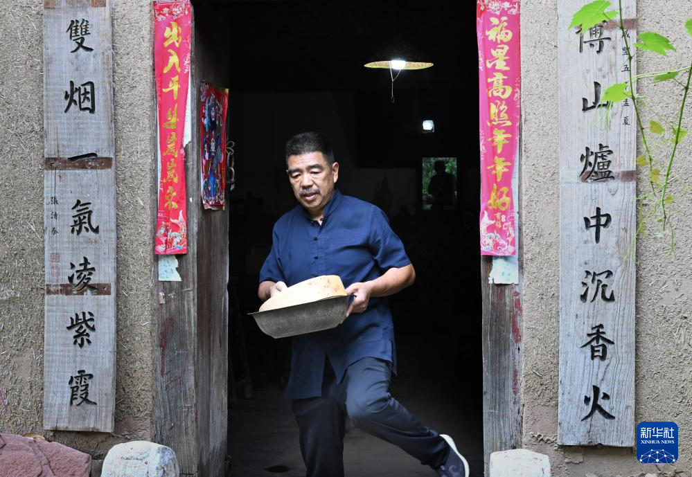 张书芳在准备进行筛粉步骤的工具(7月3日摄)。