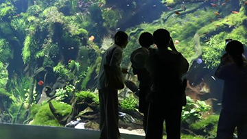 9月12日,观众在彩灯会上游览。
