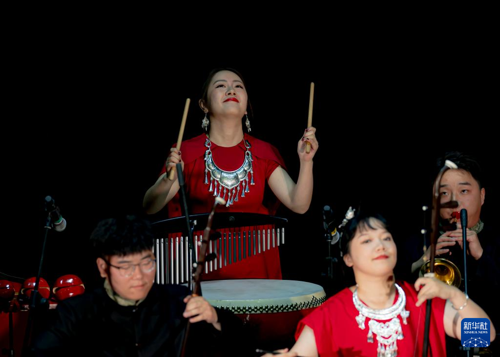 9月17日,在澳大利亚首都堪培拉,贵州省民族乐团的演员在“华韵贵音——2024中秋民乐音乐会”上演奏。新华社发(储晨摄)