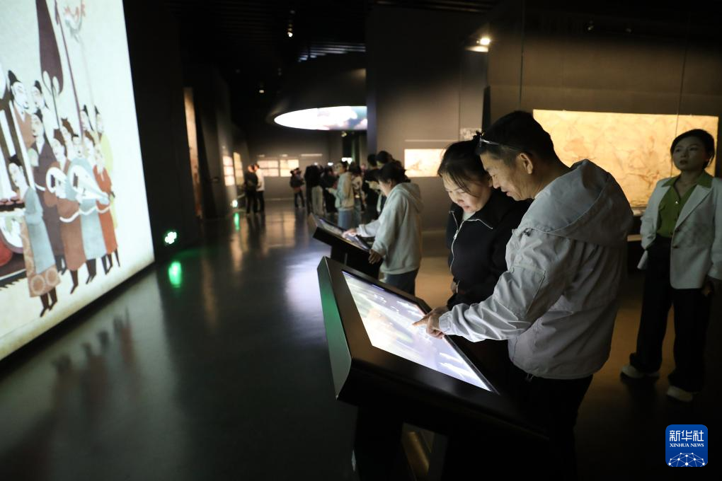 10月29日,观众在太原北齐壁画博物馆体验互动项目。
