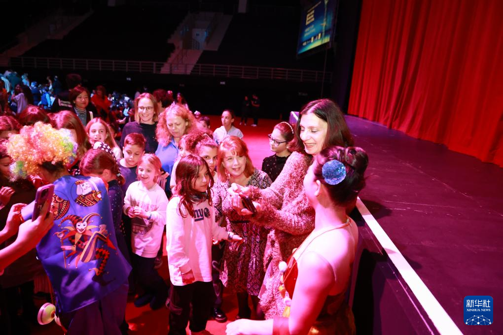 11月22日,在希腊雅典举行的第二届中希国际戏剧节上,观众与广州杂技团演员合影。