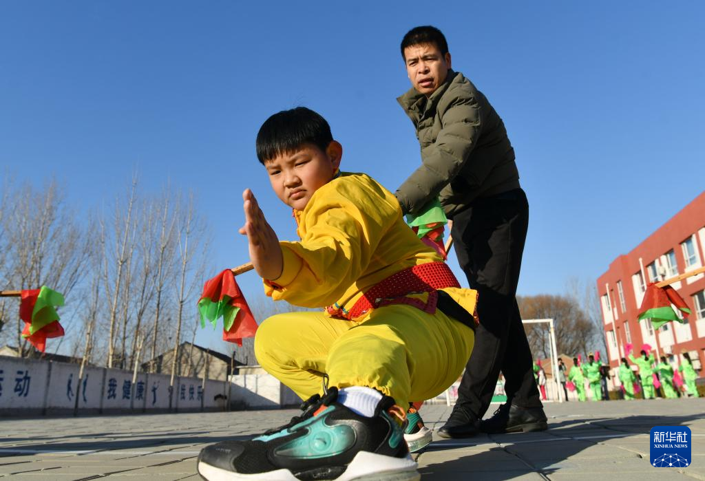 12月22日,南皮县冯家口镇车官屯小学学生在排练沧州落子。