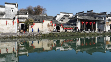 在宁德市屏南县长桥镇,修复后的万安桥通桥投用,村民带着孩子上桥体验(2024年1月21日摄)。