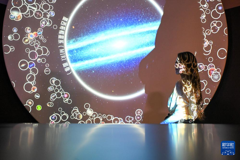 7月2日,观众参观宇宙碰撞交互装置作品。