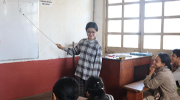 7月12日,在马达加斯加图阿马西纳,塔马塔夫大学孔子学院志愿者葛雪在塔马塔夫华侨学校给学生讲课。新华社发(西塔卡·拉乔纳里松摄)