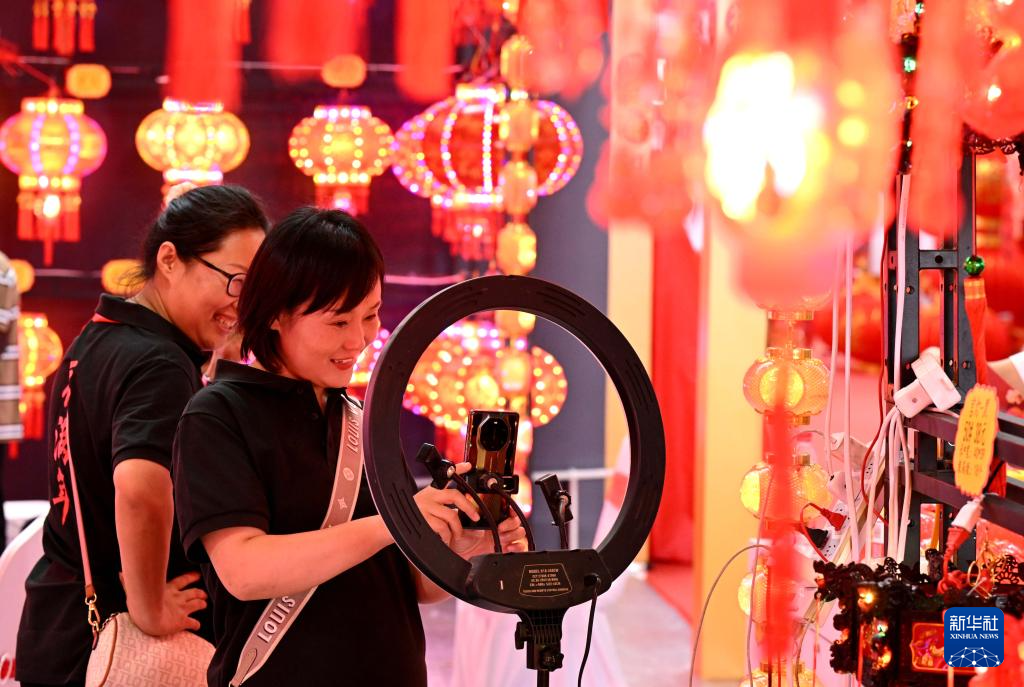8月24日,商家在位于河北省正定县的石家庄国际会展中心博览会现场直播带货。