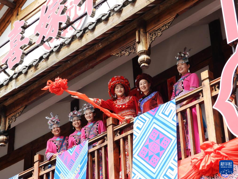 8月26日,在四川省达州市巴山大峡谷景区,演员为游客表演迎七夕土家族婚嫁民俗。