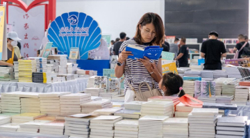 9月3日,在北京市朝阳区邮票公司,销售人员向小朋友介绍纪念邮票。