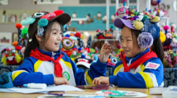 10月27日,在江苏省苏州市姑苏区平润实验幼儿园,小朋友为长辈送上重阳糕。