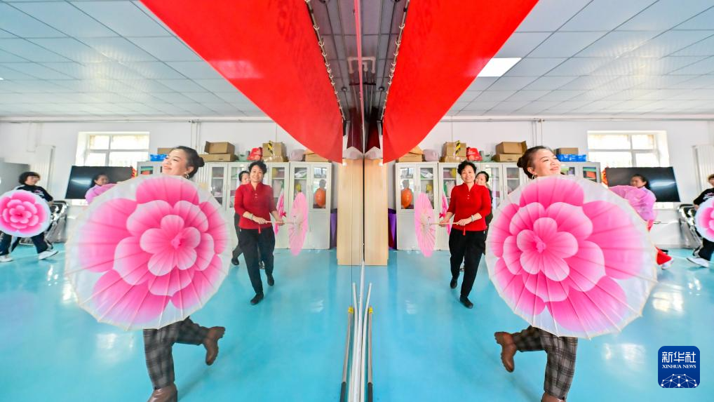 10月27日,老人在天津市滨海新区新河街道珠江里社区排练舞蹈节目。