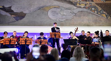 11月19日,同学们在观看国家级非遗项目四川扬琴表演。