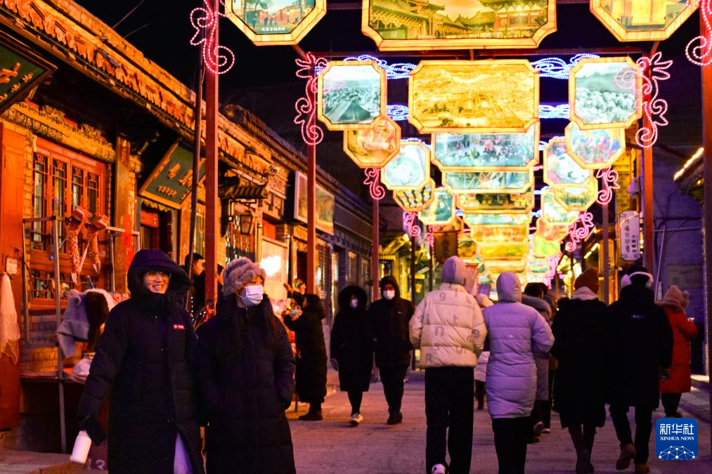 1月2日,人们在青海省西宁市湟源县丹噶尔古城观赏花灯。