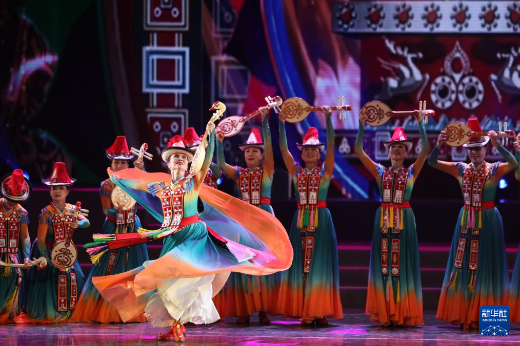 甘肃省陇南市文县白马人民俗文化艺术团的演员在甘肃省群众文艺展演展播活动首场演出中表演歌舞(1月7日摄)。