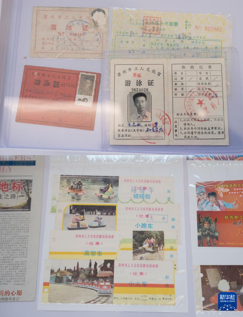 这是在苏州市工人文化宫展出的各种老票据和证件(1月18日摄)。