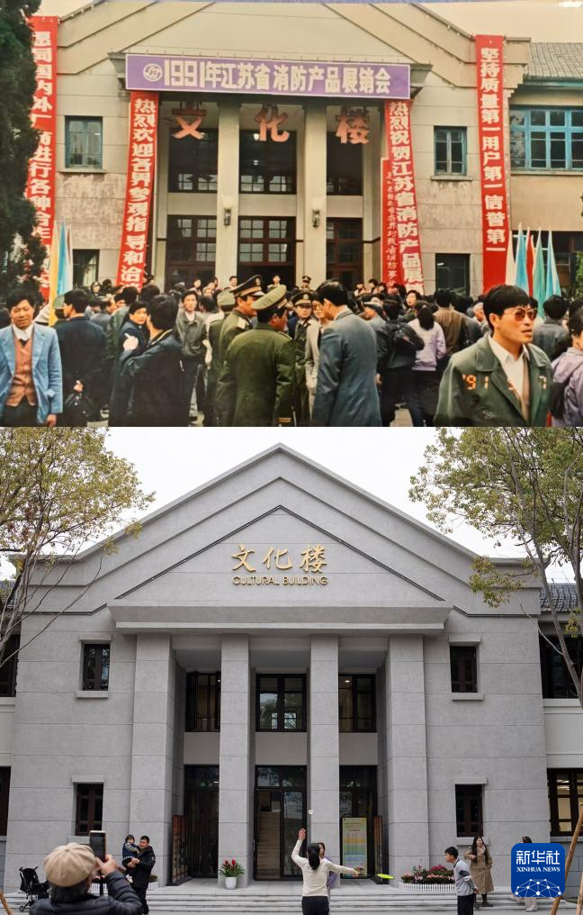拼版照片:上图为1991年拍摄的苏州市工人文化宫文化楼(资料照片);下图为升级改造后的文化楼(2026年1月18日摄)。