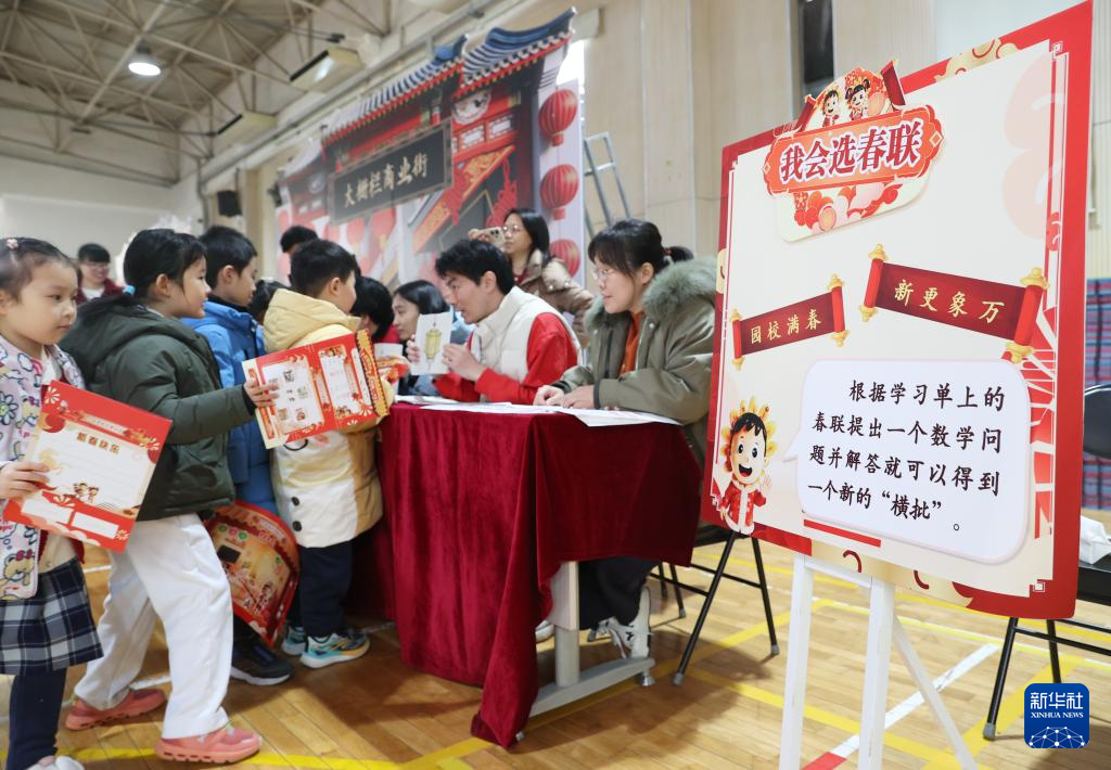 1月21日,北京小学学生在“小花蕾过大年”期末实践活动上参加“我会选春联”环节。