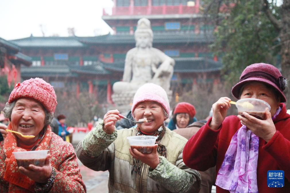 1月26日,市民在江苏省南京市毗卢寺品尝腊八粥。