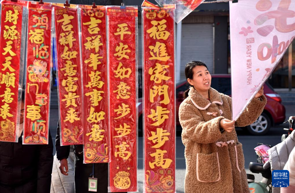 春节将至,各地群众选购节庆饰品和年货,迎接新春佳节的到来。