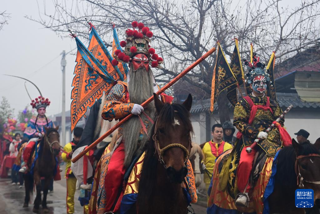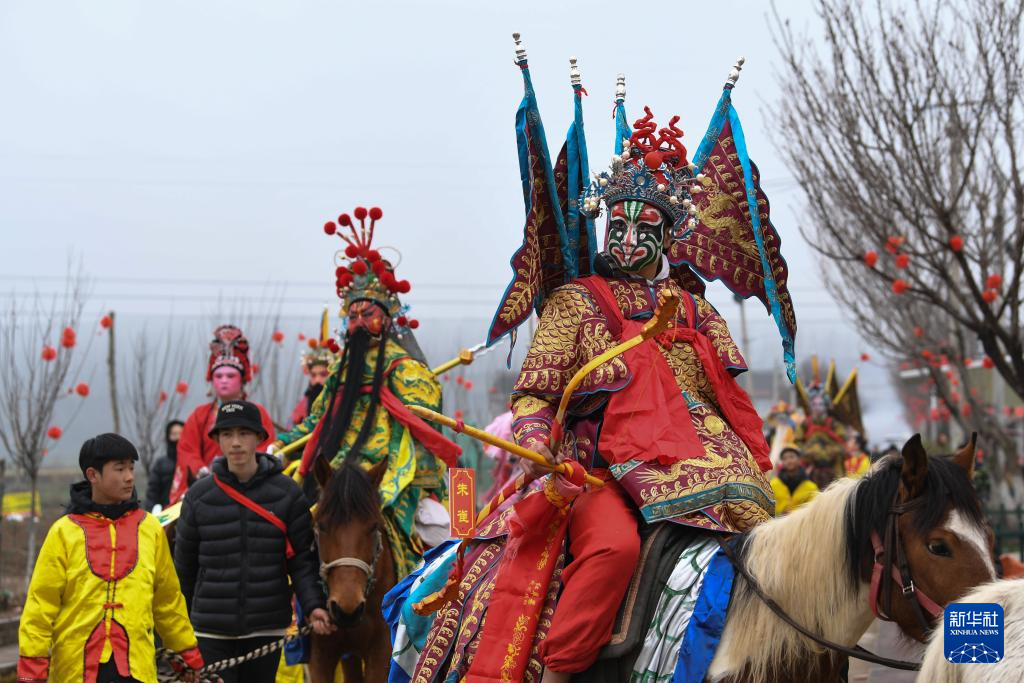 3月2日,陇县黄花峪村社火队在游演途中。
