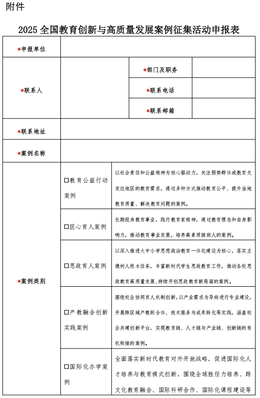2025全国教育创新与高质量发展案例征集活动申报表(点击下载)