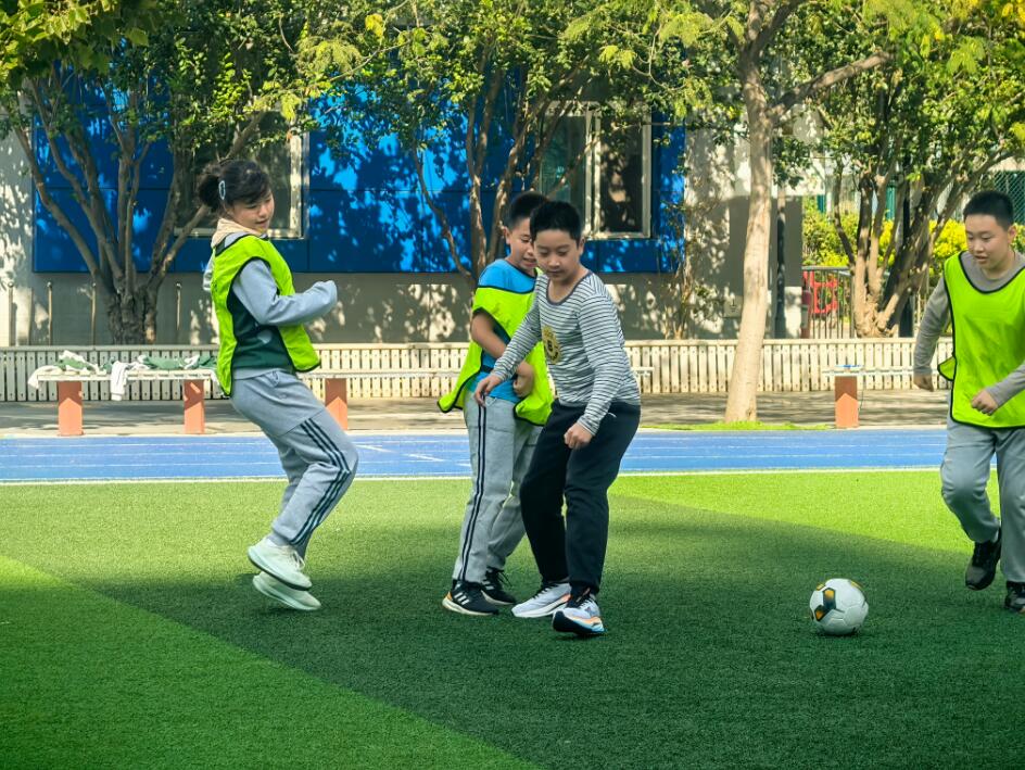 在“1+3+2+5”矩阵式育人实践下,丰台实小坚持“以赛促练、以练促健、以健育人”,确保学生每天在校体育活动时间稳稳达到170分钟以上。