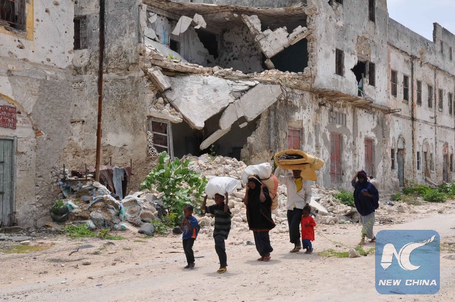 File photo shows a family returns home after Al-Shabaab vacates their strognhold in Mogadishu in 2011. (Xinhua/Faisal Isse)