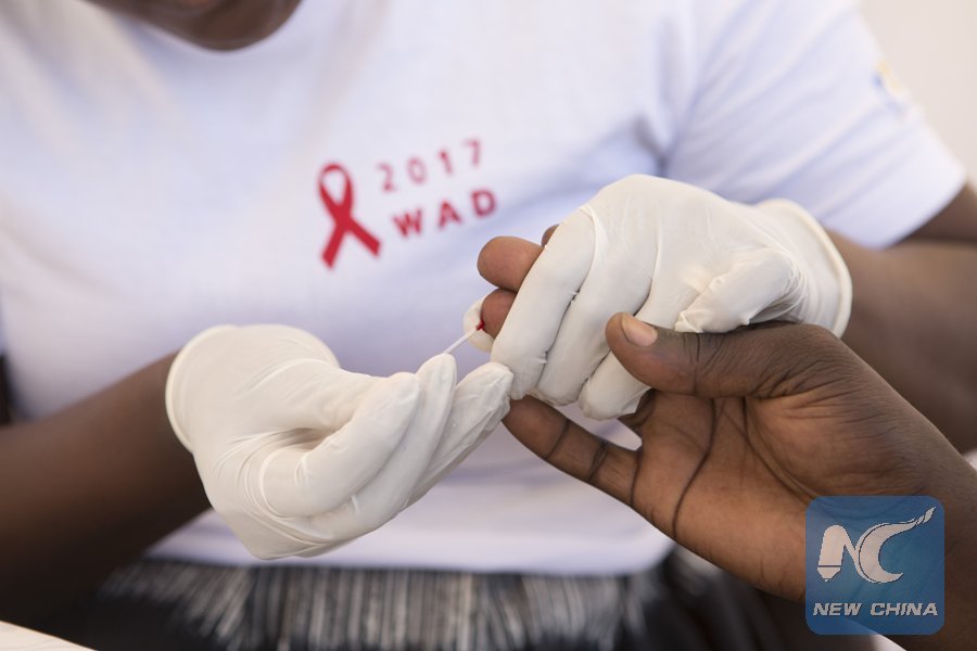 A person receives a free HIV test during the World AIDS Day activities in Kigali, Rwanda, on Dec. 1, 2017. (Xinhua/Gabriel Dusabe)