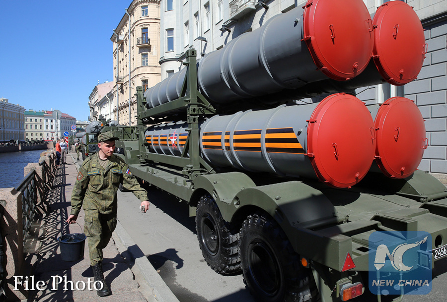 S-400 surface-to-air missile systems. S-400 surface-to-air missile systems on streets of St. Petersburg, during preparation of Victory Day parade at Palace Square. Russia, St. Petersburg, on May 5, 2016. (Xinhua/SIPA)