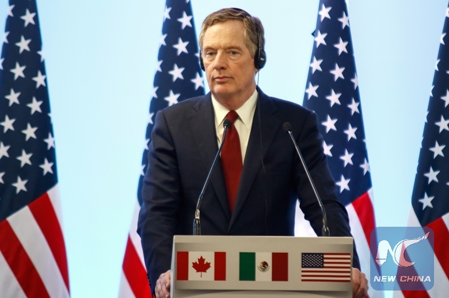 File Photo: U.S. Trade Representative Robert Lighthizer speaks during a press conference after the seventh round of talks to modernize the North American Free Trade Agreement (NAFTA), in Mexico City, capital of Mexico, on March 5, 2018. (Xinhua/Francisco Canedo)