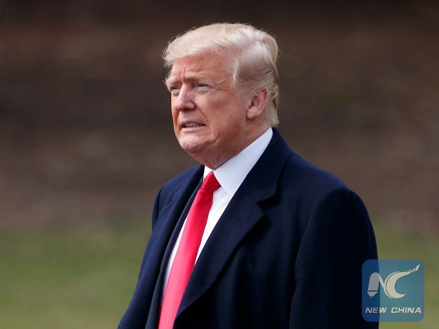U.S. President Donald Trump walks on the South Lawn heading for the Marine One departing from the White House in Washington D.C., the United States, on March 29, 2018. (Xinhua/Ting Shen)