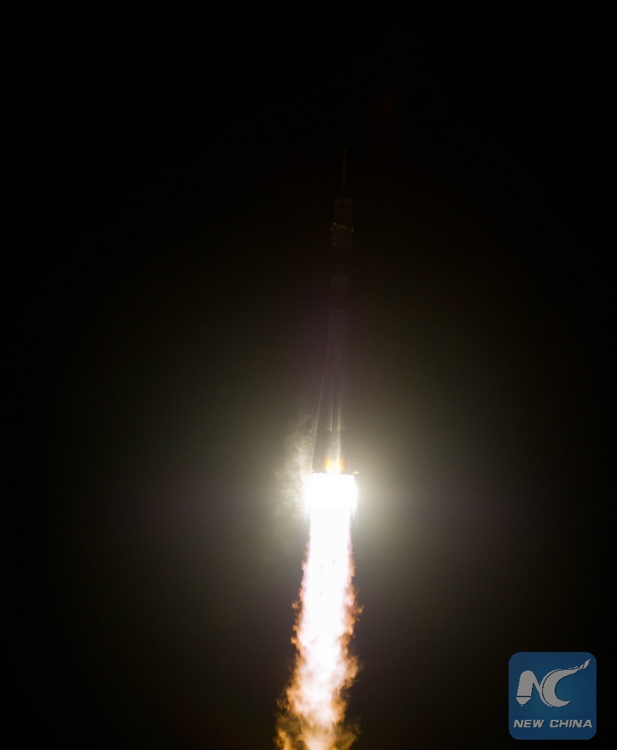 File photo released by NASA shows a Soyuz TMA-03M spacecraft blasting off from the Baikonur space center, Dec. 21, 2011. The Angolan satellite was launched at the center in Kazakhstan. (Xinhua)