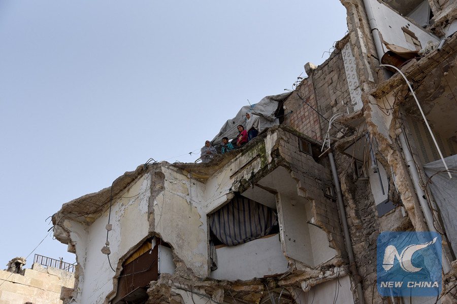 Aleppo, Syria, May 7 (Xinhua) -- Amina's only dream is to be able to read and write in a safe house, as her worst nightmare is falling off her half destroyed balcony, which she referred to as the "home of destruction" in Syria's Aleppo city.