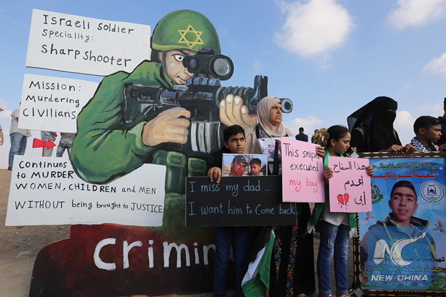 GAZA, July 14 (Xinhua) -- Tension between Israel and Hamas-led military groups in the Gaza Strip escalated on Saturday and may lead to a large-scale confrontation as the two sides have been exchanging fire since Friday night.