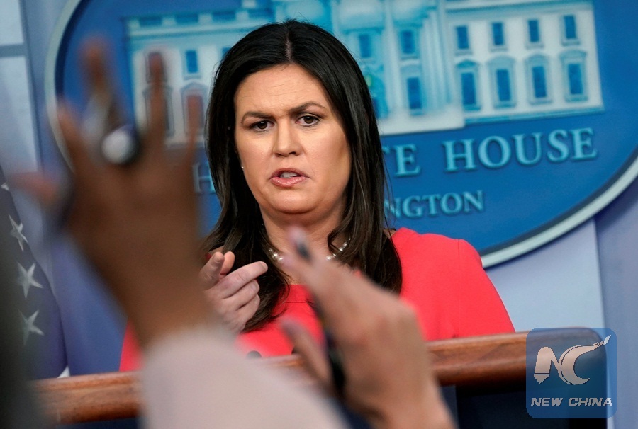 White House Press Secretary Sarah Sanders speaks during a press briefing at the White House in Washington, U.S., July 18, 2018. (Xinhua/REUTERS)