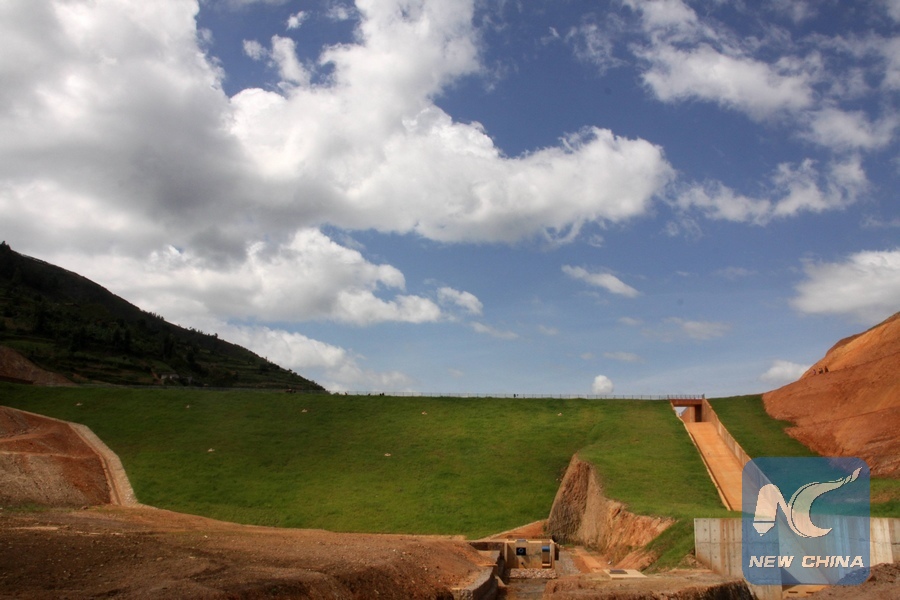 Photo taken on Feb. 16, 2018 shows a view of Muyanza Dam built by China Geo-Engineering Corporation (CGC) in Rulindo District, Northern Province of Rwanda. The recently completed Muyanza Dam is the second highest in Rwanda and the country's highest and largest earth fill dam in the agriculture sector. It will benefit farmers and help grow crops for exports, a Rwandan official said on Thursday. (Xinhua/CGC)