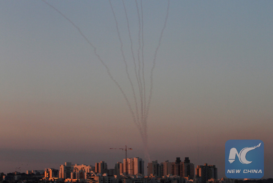 JERUSALEM, Nov. 13 (Xinhua) -- The barrage of rockets from the Gaza Strip continued targeting southern Israel on Tuesday, killing a man, while Israeli airstrikes killed four in Gaza amid one of the worst flare-ups since 2014.