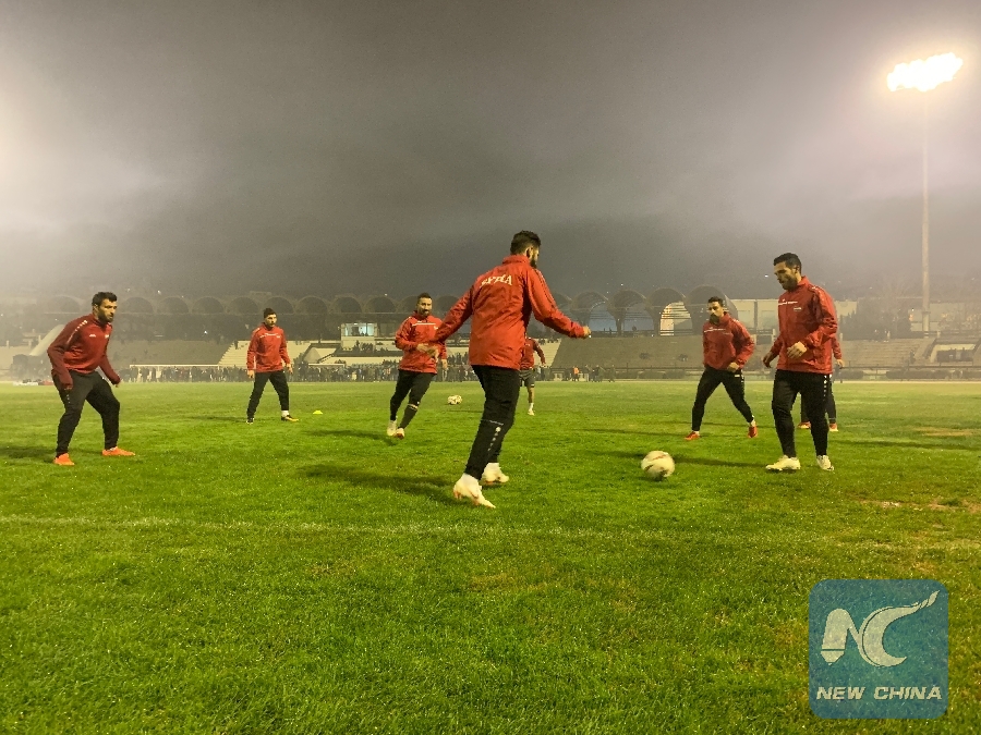 The Syrian national football team prepare for the Asian Cup at the Fayha Stadium in Damascus on Dec. 22, 2018. (Xinhua/ Hummam Sheikh Ali)