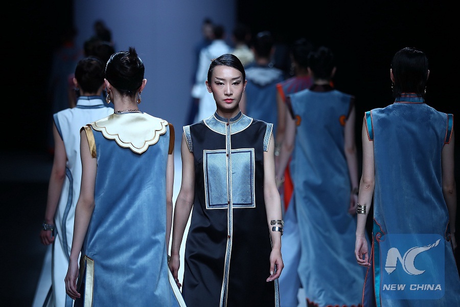 Models present fashion creations during the China Fashion Week in Beijing, capital of China, March 31, 2018. (Xinhua/Zhang Yuwei)