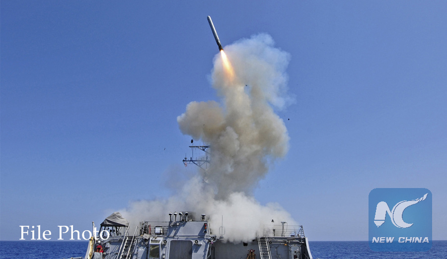 The guided-missile destroyer USS Barry launches a Tomahawk cruise missile from the ship's bow in the Mediterranean Sea in this U.S. Navy handout photo taken March 29, 2011. (Reuters Photo)